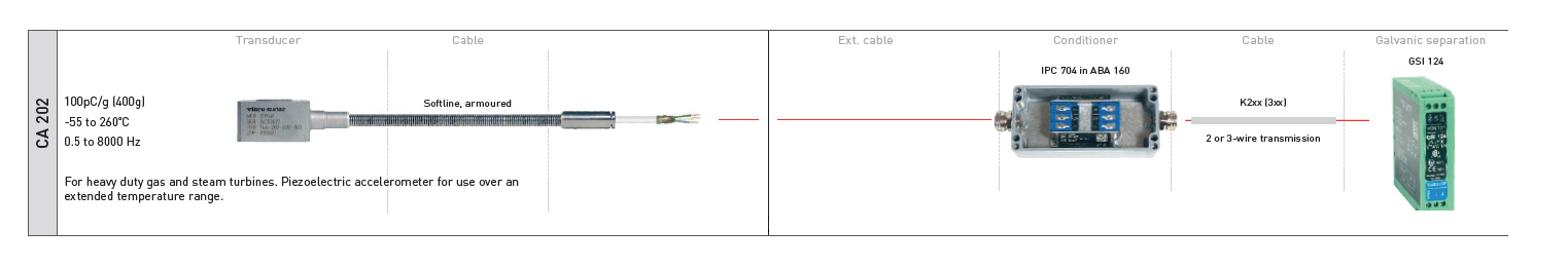 CA202 هو مقياس تسارع كهرضغطي صناعي لمراقبة الاهتزازات. حساسيته العالية تبلغ 100 بيكو سي/جم، واستجابة تردده تتراوح بين 0.5 و6000 هرتز، ونطاق درجة الحرارة: من -55 إلى 260 درجة مئوية. تتم معايرة تردد CA202 من قبل الشركة المصنعة قبل الشحن.